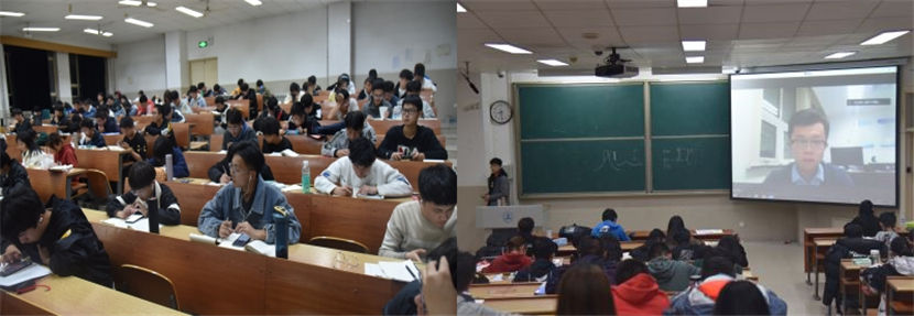 暑期社会实践优秀学生等荣誉称号,后考取山东省拔尖选调生,现任滨州市无棣县水湾镇白杨村党支部书记助理。刘旭阳联系自身经历,讲述自己大学生活经历以及报考选调生的前后感受,有针对的对考研、就业和考公务员三个方向的选择作出指导和提供建议。刘旭阳认为在校大学生应该努力学习文化课知识,积极参加课外活动,从而不断提高自身能力,为以后的工作生活作准备。最后,同学们纷纷通过弹幕提出问题,刘旭阳详细解答,形成了良好的互动氛围,激发了同学们的生涯规划热情。