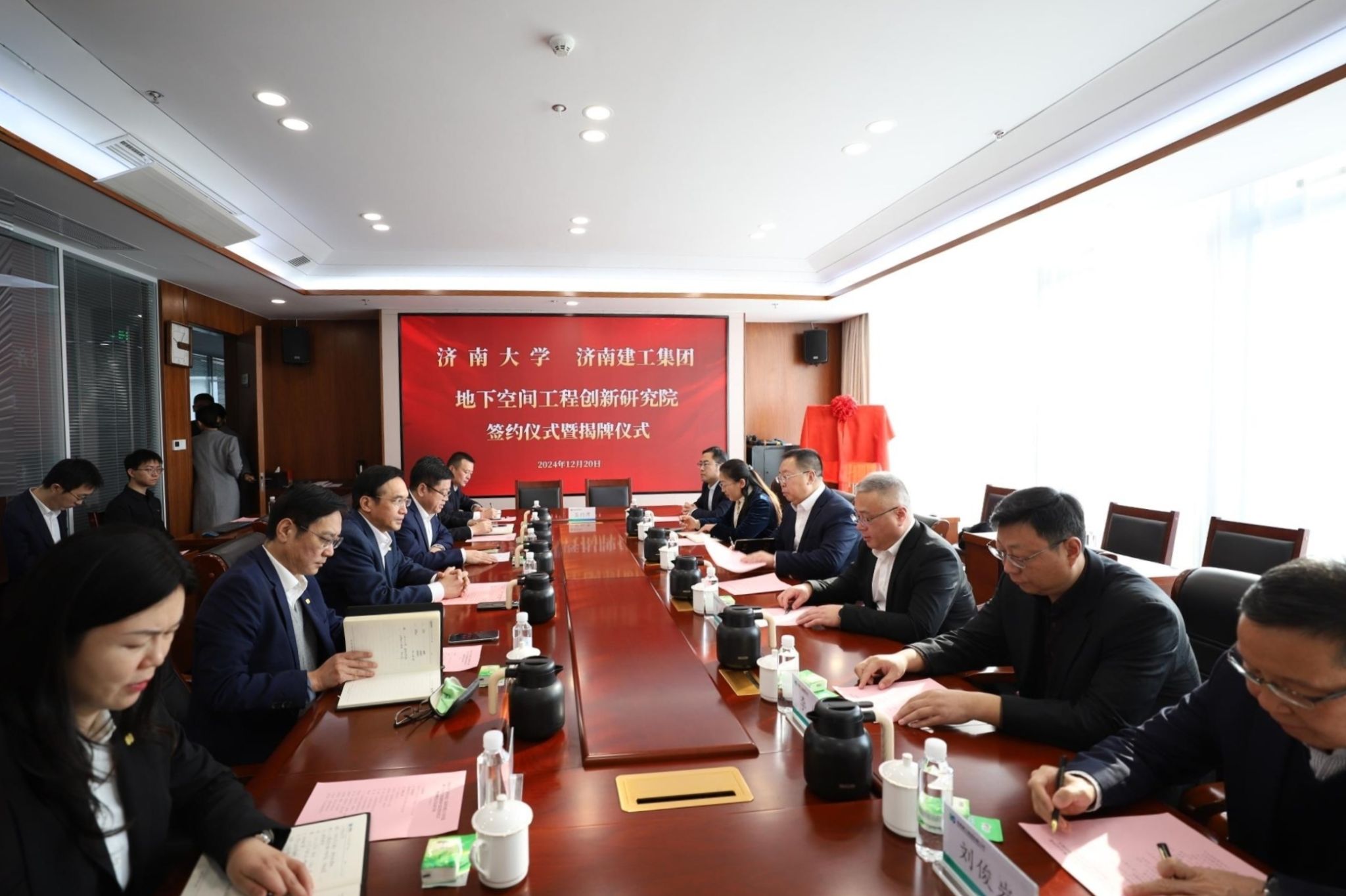 仪式上,刘宗明校长与曹晓岩董事长共同为地下空间工程创新研究院揭牌。黄加栋副校长与济南建工集团窦家利副总经理签订了地下空间工程创新研究院协议书。