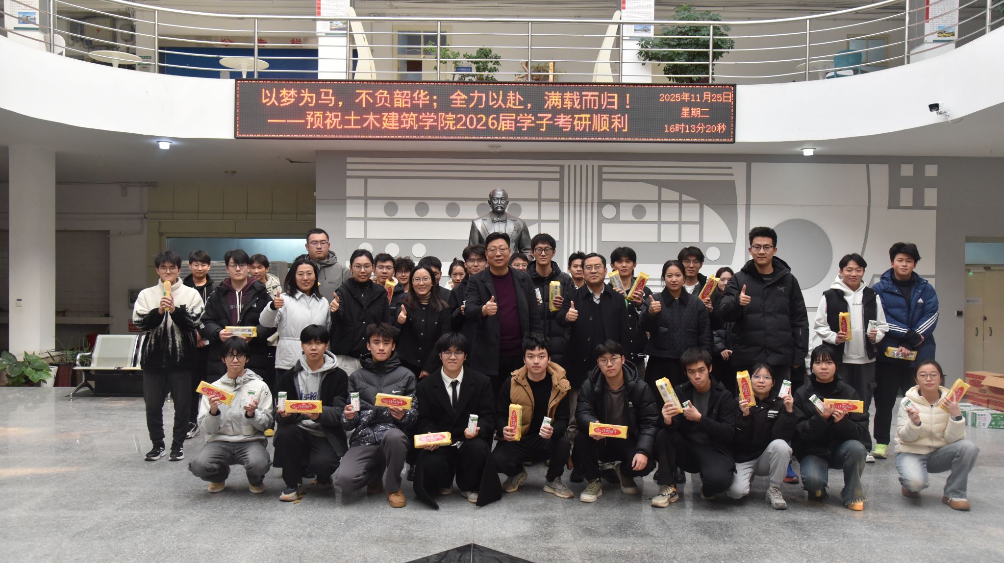 相信在学院的全力支持与学子们的不懈奋斗下,土建学院全体2026届考研学子定能轻装上阵,以饱满的精神和昂扬的斗志在考场上挥洒才华,再创佳绩,一战成硕!
