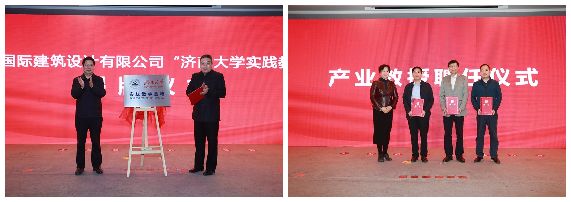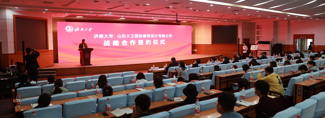 申作伟董事长在讲话中简单介绍了山东大卫国际建筑设计有限公司的发展情况。他指出,希望通过引入设计大师和校企合作办学,可以共同推进、带动相关学科跃升发展,推进教学改革和创新。同时希望校企双方精诚合作、拓展创新,为培养优秀人才,提升济大学科建设水平,扩大校企影响力砥砺前行,祝愿校企合作拥有光明的未来,结出丰硕的果实。