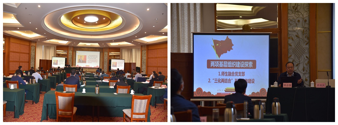 报告主要从“创新支部架构新模式,建设师生融合党支部”、“‘三化两结合’做好基层支部条件建设”两个方面将学院党建创新工作进行了总结汇报。学院党委在完成学生支部设置按专业纵向打通的基础上,试点建设师生融合党支部,将同一专业的教师党支部和学生党支部合并为一个师生联合党支部,实现了一个转变和四个紧密结合,即:从形式上的“联合”向作用发挥的“融合”转变,建成师生融合党支部。实现了党建与团建紧密结合,“教”与“学”紧密结合,党建工作与专业建设紧密结合,党建带头人与学术带头人培养紧密结合。积极推动基层党建“三化两结合”,即:推进基层党支部标准化、规范化、阵地化建设,推动党建工作与专业建设相结合,党建工作与学科发展相结合,为学院各项事业发展凝聚力量,提供坚强的组织保证。进行基层党支部活动阵地的硬件改造,重新规划打造党员活动室,给广大师生党员提供了学习、活动阵地。选择一处系部活动室由本系部党员亲自参与设计,打造一个支部“党员小家”,突出专业特色,将党建文化和系部学科发展、专业建设进行融合,进一步增强了学院基层党组织的阵地化建设。