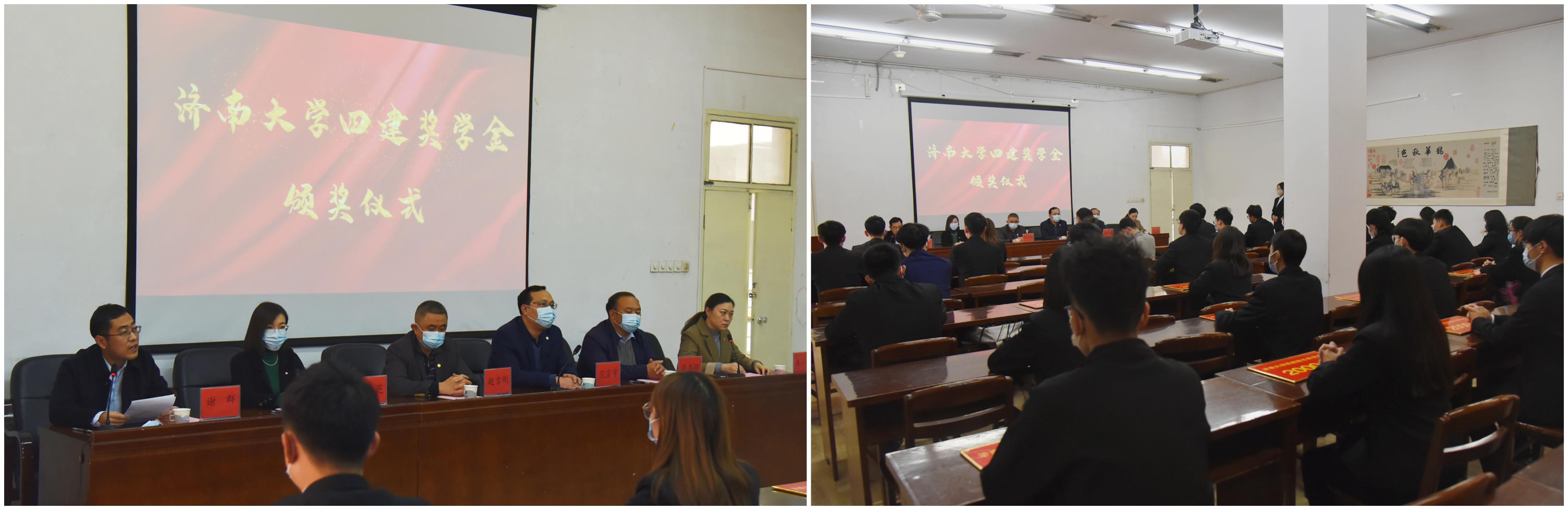举行。出席颁奖仪式的嘉宾有济南四建(集团)有限责任公司党委副书记、纪委书记赵吉刚,人力资源部部长范宗宇,学校党委学生工作部(处)副部(处)长刘芝,耽美漫画