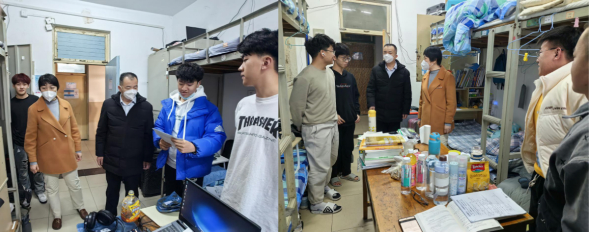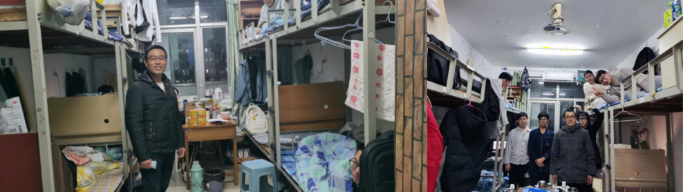 党委书记刘效东、副书记朱小燕以及各年级辅导员与班主任深入学生宿舍,为同学们开始新学期生活送上温暖关怀并加油鼓劲。