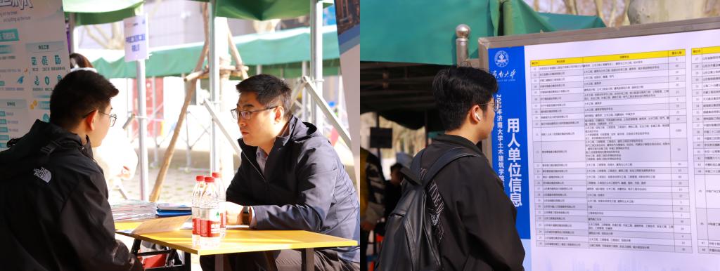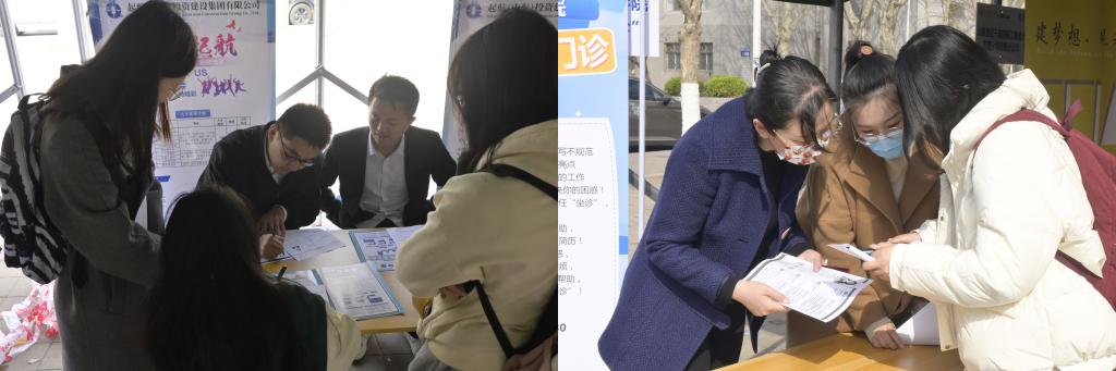 招聘会现场还设立了土建学院就业指导简历门诊,毕业班辅导员班主任齐到场,为毕业生开展面对面就业咨询,指导完善简历。