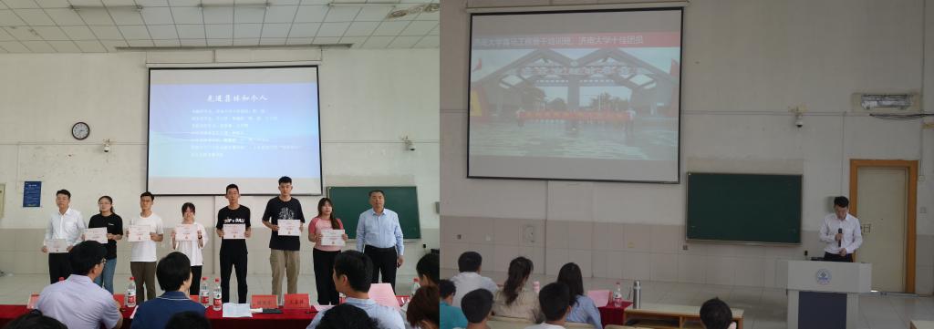 “青春榜样”表彰决定,与会领导分别为获奖同学颁奖。“青春榜样”获得者陈涛、陆浩然、王慧中、陈子俊作为典型代表发言,他们从考研、推免、科创、实践等方面分享了自己的成长经历与感悟。他们号召青年学生要始终做一个志向远大信念坚定的人,向自己的目标去奋斗;作为新时代青年不仅要刻苦学习、锐意创新,更要有家国情怀,积极进取,力争将来回馈母校奉献社会。