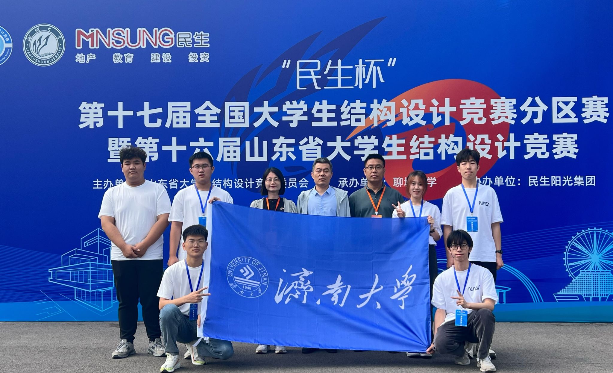 全国大学生结构设计竞赛是2005年由浙江大学倡导并联合国内11所高校共同发起,经教育部和财政部批准发文的全国性学科竞赛项目。本次竞赛由山东省大学生结构设计竞赛委员会主办、聊城大学承办,为期3天。竞赛以高耸塔式结构为基本单元,要求参赛者针对水平荷载、竖向荷载及水平振动复杂工况对其进行受力分析、结构设计、模型制作及加载实验,具有极强的专业性。
