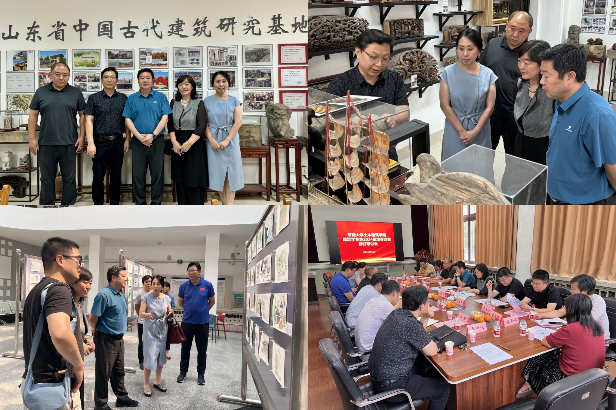 两位专家现场考察了建筑学专业的设计教室、实验室以及山东省中国古代建筑研究基地等教学场所,观看了建规美术写生学生作品展,并查阅了培养方案、教学大纲、设计图纸等资料。两位专家对设计教室办学环境、中国古代建筑研究基地等硬件条件予以肯定,也对实验室建设、师资配备、学缘结构的不足之处提出了改进建议。