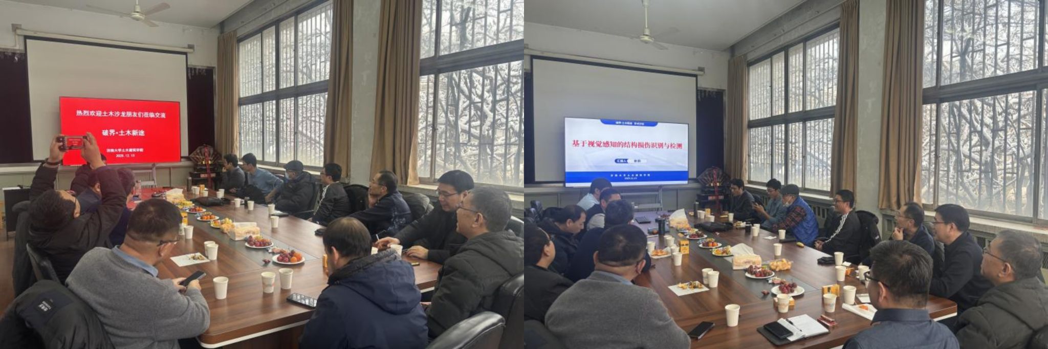 随后,学院院长谢群作了《基于视觉感知的结构损伤识别与检测》的报告,首先展示了目前的视觉方法在实际应用中存在的问题,着重讲解了裂缝识别检测技术、变形监测、裂缝深度预测研究这三个课题,通过介绍实验目标,实验流程,实验设备,实验参数以及实验结果让参会的老师和同学对结构损伤的识别与检测有了更加全面的了解。然后讲解了对于既有房屋病害的智能侦测系统,展示了该智能侦测系统的应用场景与实际意义。使得各位参会老师和同学对这种智能侦测系统有了更加完善的认识。