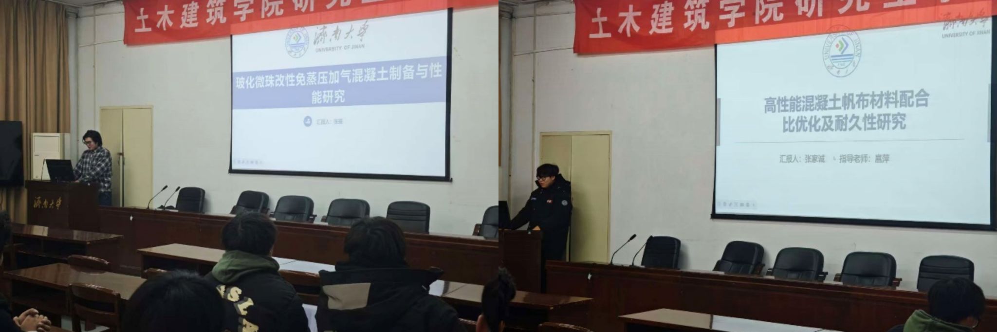 十六位研究生从各自科研领域,特别是土木相关的研究热点和研究方向进行了现场汇报。
