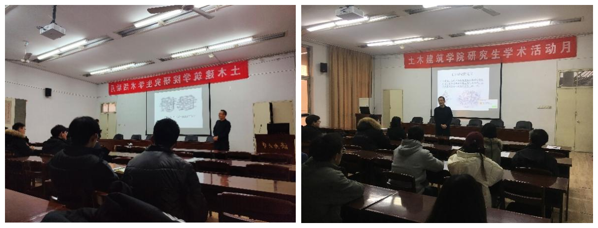 杨令强教授就“土骨架力学”做了主题学术报告。杨老师在进行报告的同时,强调了掌握专业知识、夯实理论基础是实现创新、迎来研究领域上技术之本质飞越的前提条件,鼓励广大同学脚踏实地、踏踏实实地进行学习及研究工作。接下来,14位研究生对各自的学术论文做了相应报告,并与在座同学进行广泛交流,气氛活跃。
