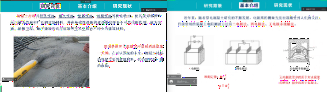 李杰同学针对混凝土无损检测,向大家展示了理论简单、结果准确的电阻率测量法,并详细介绍了其中的二电极法、四电极法、无电极非接触法以及高密度电法,使各位同学对混凝土检测技术有了新的认识。