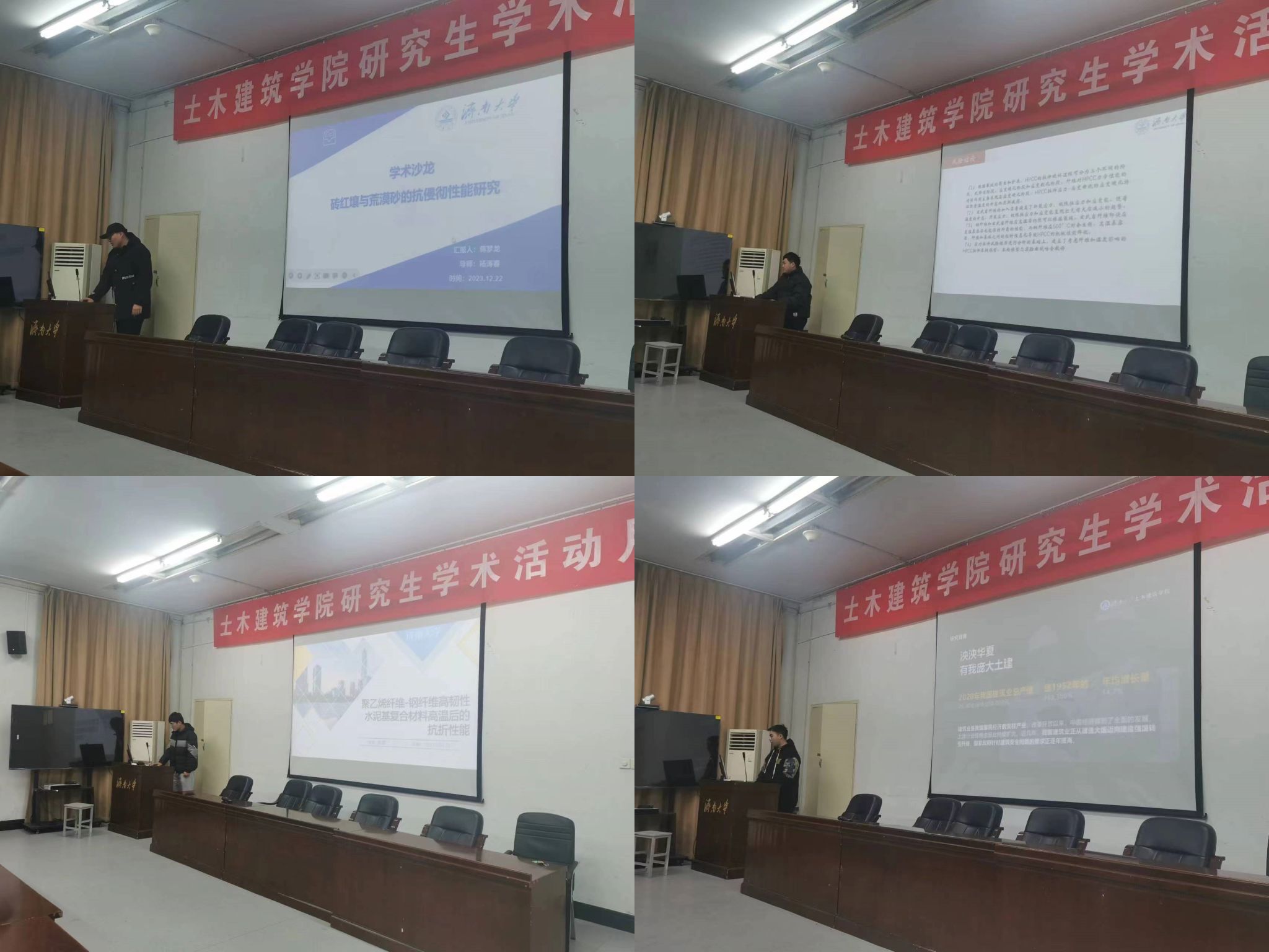 张雷以Tensile behavior of steel-basalt hybridfiber reinforced cementitious compositeafter high-temperature exposure为主题。展示了在混凝土混合物中结合不同类型的纤维可以通过监测裂缝的萌生和扩展来改善水泥基质的强度性能。需要彻底研究混合纤维的贡献,同时考虑纤维类型和含量等多种参数。