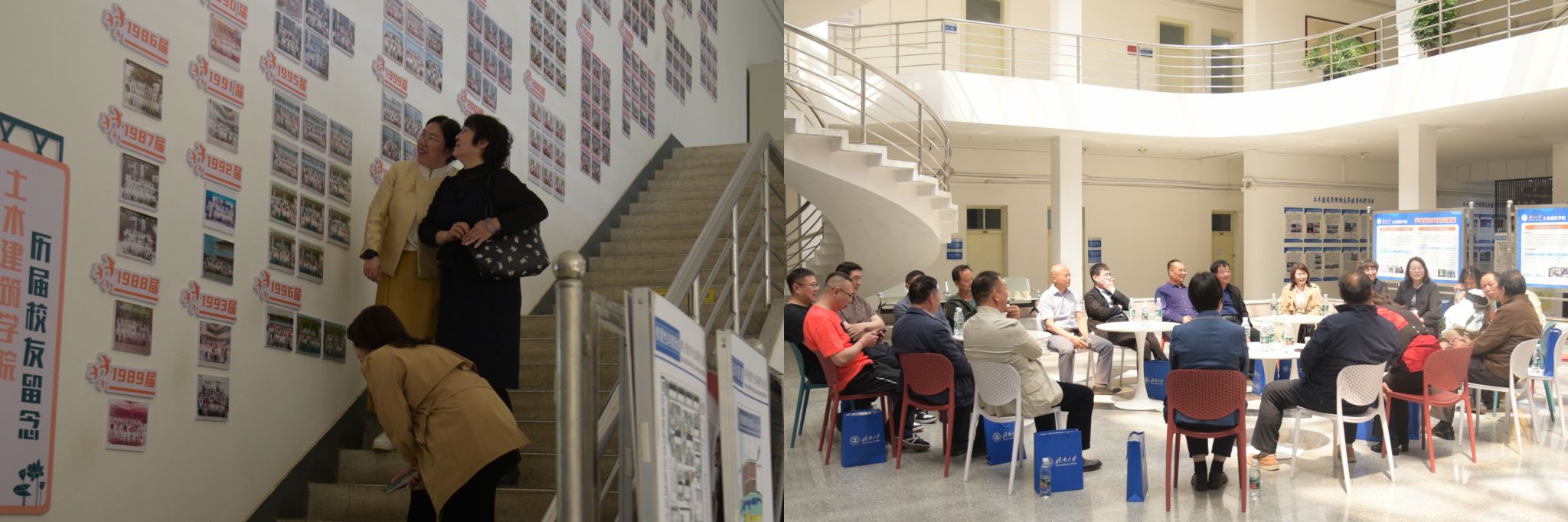 在交流环节,曾在学院工作过的领导老师们如数家珍地回忆起三十年前与同学们相处的点点滴滴,一件件趣事和一幅幅场景在同学们心中掀起阵阵涟漪。学院高度重视校友工作,征集了历届学生的毕业照片,在“鲁班堂”制作了校友照片墙,校友们在一张张照片里回首青葱岁月,重温难忘往事。校友们激动的表示,看到学校学院的发展,感到由衷的欣喜与自豪,并承诺会牢记母校教诲、不忘初心,在各自的工作岗位上发挥“济大”力量,为国家建设添砖加瓦、贡献力量。