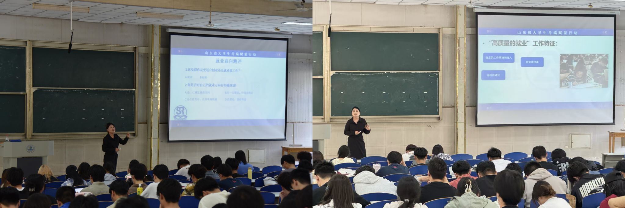 会议邀请了公务员、事业编考试指导专家为同学们进行了求职礼仪等就业指导,针对目前考公考编学生日趋增多的情况,他为同学们解析了公务员考试的不同类型,帮助同学们树立对公务员这一职业的正确认识,并进一步阐述了公务员岗位报考竞争比例。之后,她立足多年教学实践与个人经验,对公务员考试如何精准选岗,行测、申论如何高效复习备考等问题进行了深入讲解。