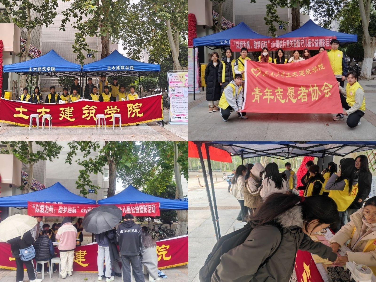 在第八食堂前举办关爱留守儿童公益活动。学院青年志愿者协会的志愿者们积极参与,搭建场地,邀请学校的同学们参与活动,书写明信片,为遥远的孩子们送去一份爱意与关怀,他们活跃的身影与明信片上字字句句温暖有力的话语共同绘就了一幅最美丽的画卷。