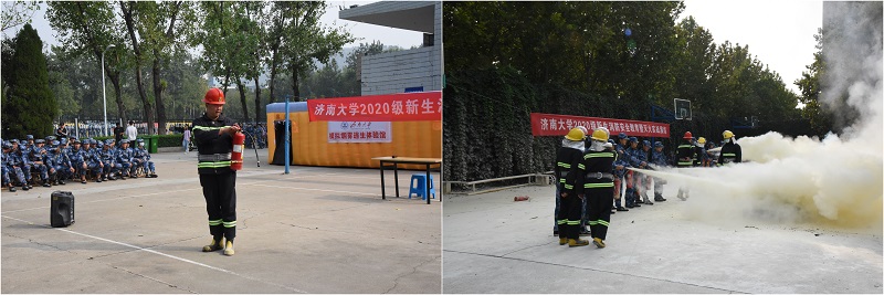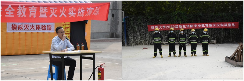 组织2020级全体新生于大礼堂北侧参加消防安全教育讲座。本次讲座特邀安全管理处消防科科长赵玉琦主持讲话,为新生讲解消防知识,指导消防技能。
