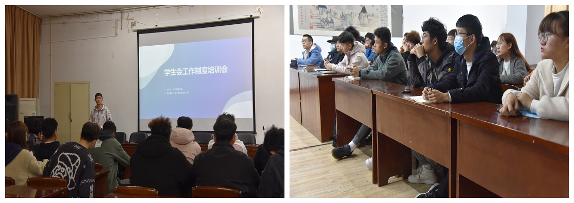 学生组织的合作精神。会议对学生组织的公文书写和活动开展等工作制度也做出了详细解答,对包括活动报销、卫生保持、例会考核等方面提出详细要求。学生组织成员专心听讲,认真记录,均表示经过此次培训受益匪浅。