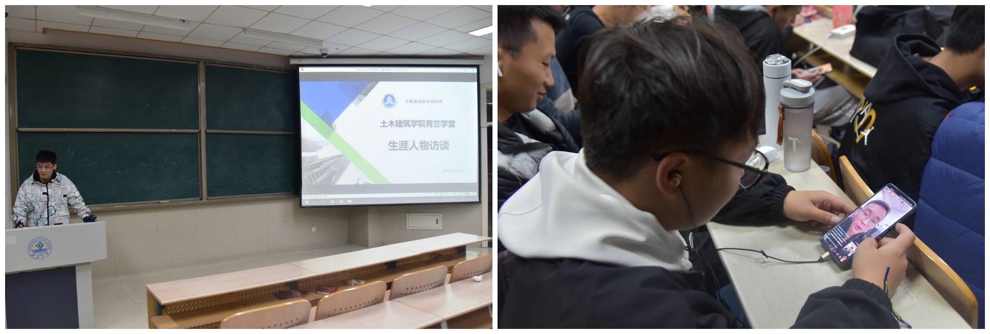 四建奖学金和多项科创赛事奖项,后推免进入中南大学攻读硕士研究生学位,在国际顶级学术刊物上发表多篇学术论文。唐学长讲述了自己的大学生活经历,对大学四年学习生活规划进行经验分享和指导。此外,他还分别就保研考研、就业和考公务员三个方向的选择和所需要做的准备进行详细分析并提供相关建议。最后,同学们通过弹幕提出问题,唐学长一一解答,形成了良好的互动氛围,激发了同学们的生涯规划热情。同学们纷纷表示,唐学长就未来道路的选择提供了大量宝贵的建议,帮助自己进一步明确学习目标,增强学习动力。