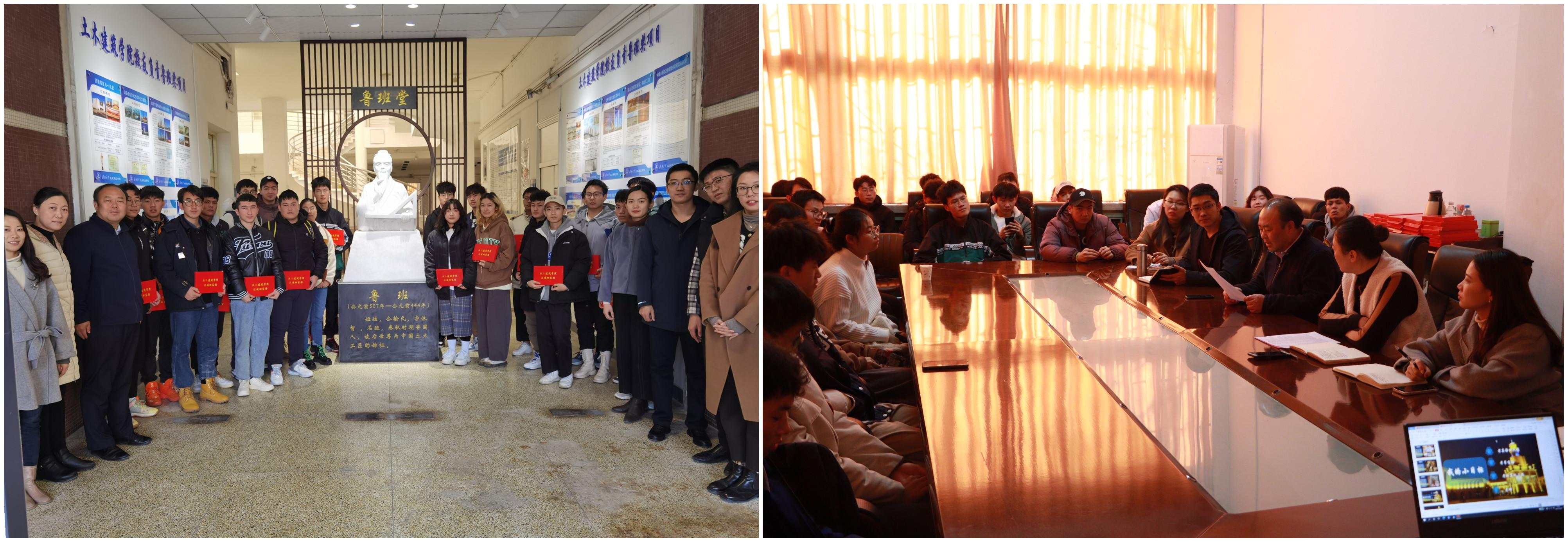 会后,学院领导老师为参会学生赠送书籍,师生共同前往鲁班堂参观,并合影留念。
