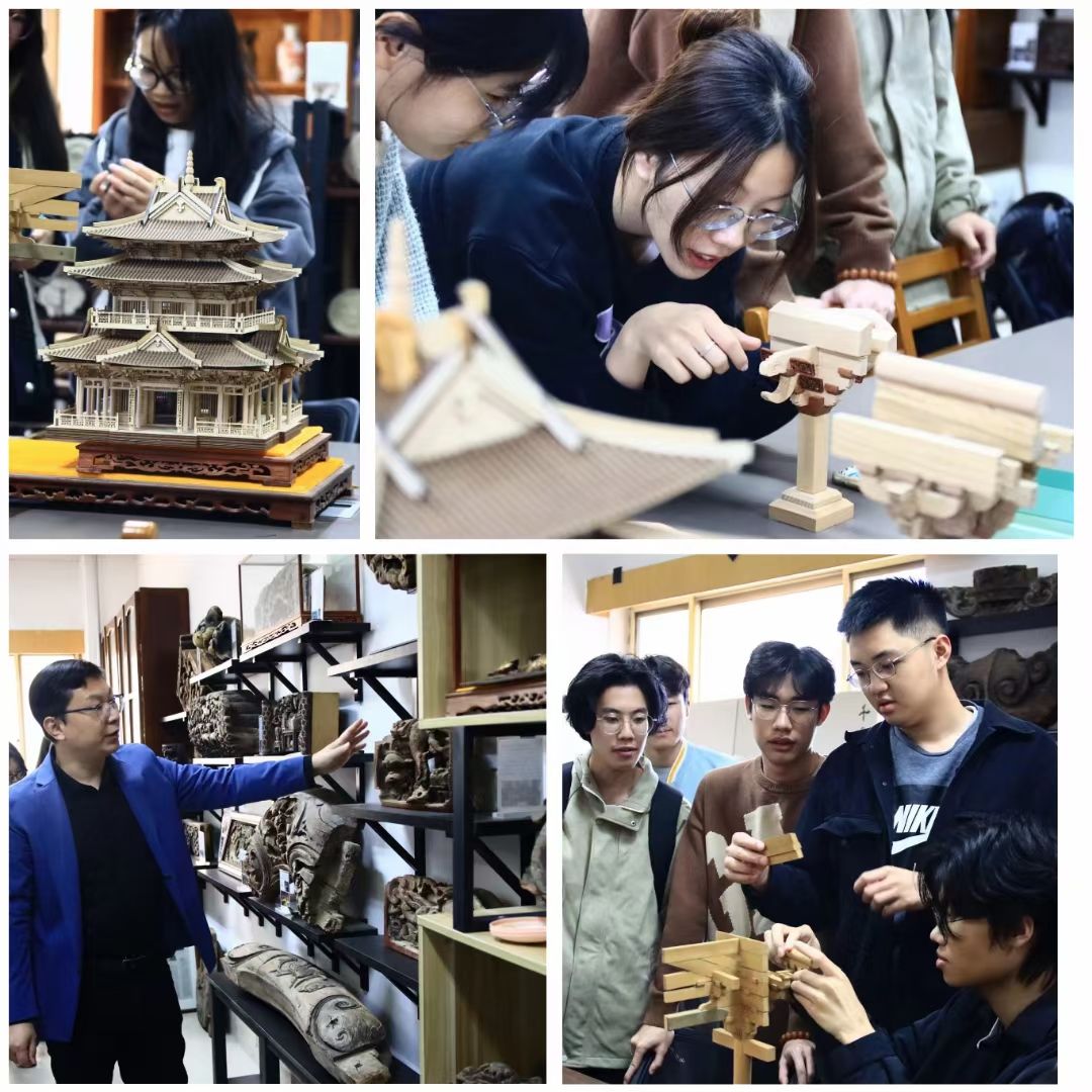,不仅是教学、科研的重要场所,更是社会服务和建筑构件展示的省级教育科普基地。这里收集了古今建筑构件500余件,数量居山东省高校之首,为同学们提供了一个难得的学习和观摩的机会。随后,刘强老师为同学们讲解了古建筑的结构框架、斗拱、屋顶、墙体等相关理论知识,让同学们对古建筑有了更深入地了解。为了让同学们更直观地感受古建筑的魅力,刘强老师还现场指导同学们动手搭建古建筑模型,通过实操教学让同学们亲身体验古建筑的构造和韵味。