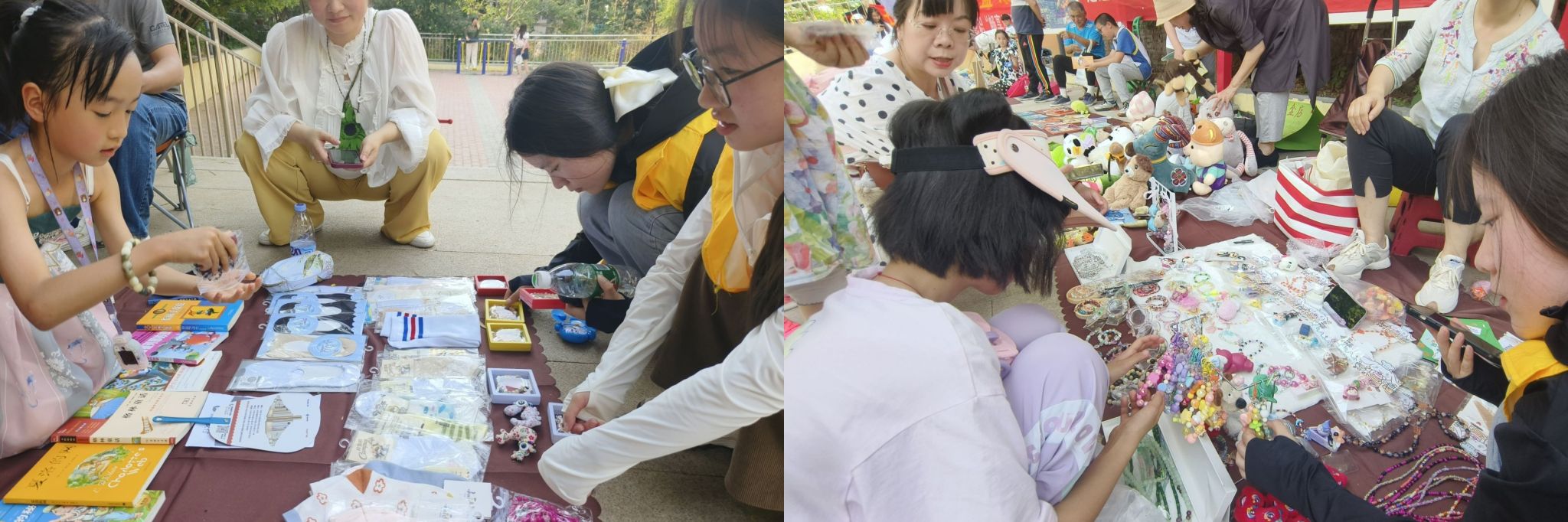 筑梦砼行青年志愿者来到市中区卧龙社区广场,携手青少年开展“童趣跳蚤市集”主题活动,进行物品的交换或售卖。
