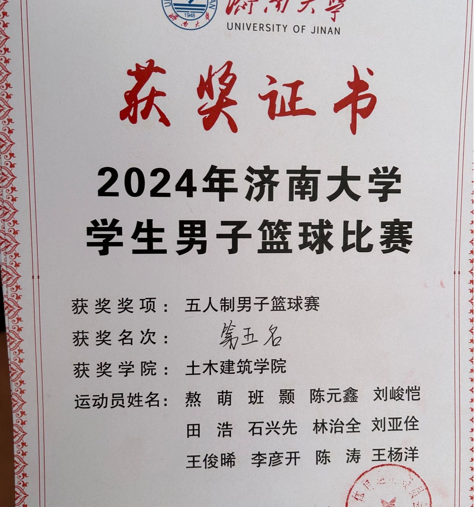 一路过关斩将,取得了第五名的好成绩。